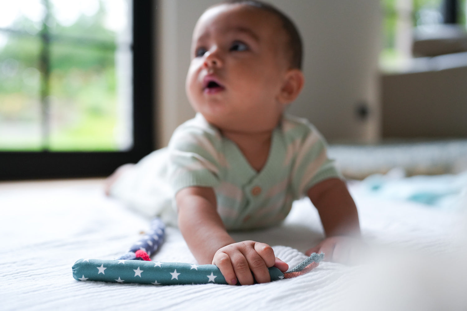 Genau so eine Kaustange habe ich schon ewig gesucht. Super leicht und genau die richtige Größe, damit kleine Babyhände es halten können.